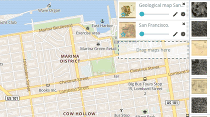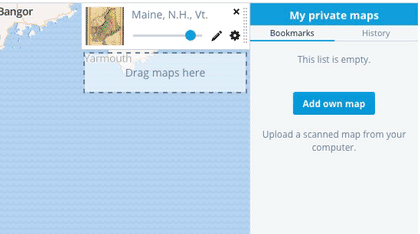 Refine the position of a map overlay with the Georeference tool. It is even possible to upload your scanned maps.